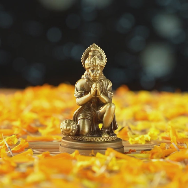 Hanuman in Pranam Mudra embodies ultimate devotion and humility. His kneeling posture blesses your home with courage, faith, and spiritual strength.
